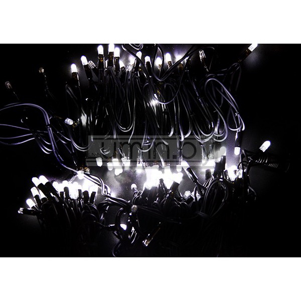 Светодиодная уличная гирлянда 200 LED состоит из модулей по 4 метра, светодиодные лампочки расположены на расстоянии 10 см друг от друга. В одну сеть можно подключить до 15 гирлянд (300 метров).