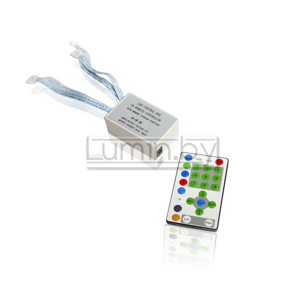 RGB-контроллер для светодиодной ленты Magic управляется с помощью инфракрасного пульта. На данном пульте расположено 24 кнопки, нажимая на которые можно выбрать цвет свечения ленты, отрегулировать яркость свечения RGB ленты и режим мигания диодов (9программ).
