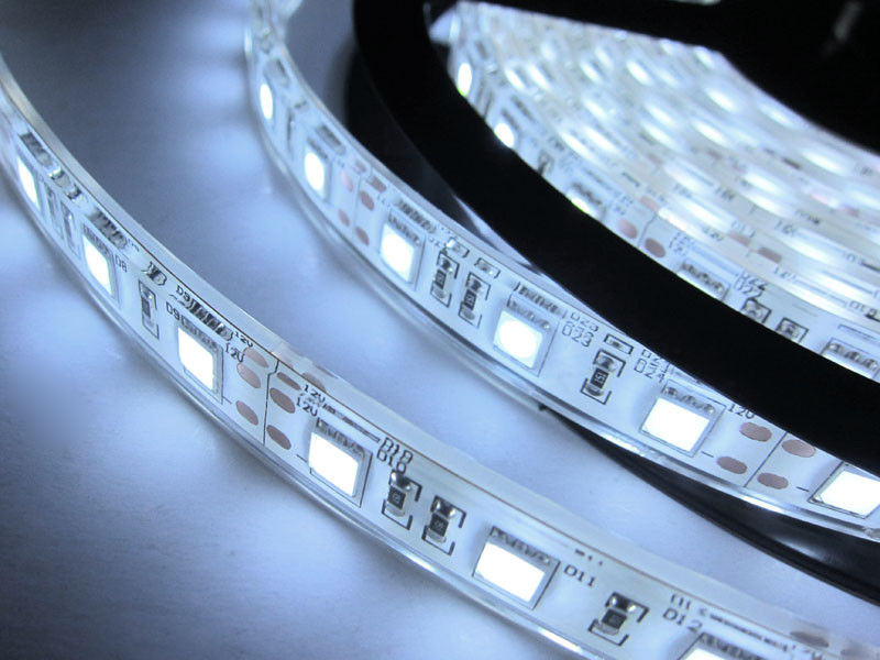 Влагозащищенная светодиодная лента 5050, 60 диодов на метр, чаще всего используется для подсветки потолков (натяжных, подвесных) в ванных комнатах.